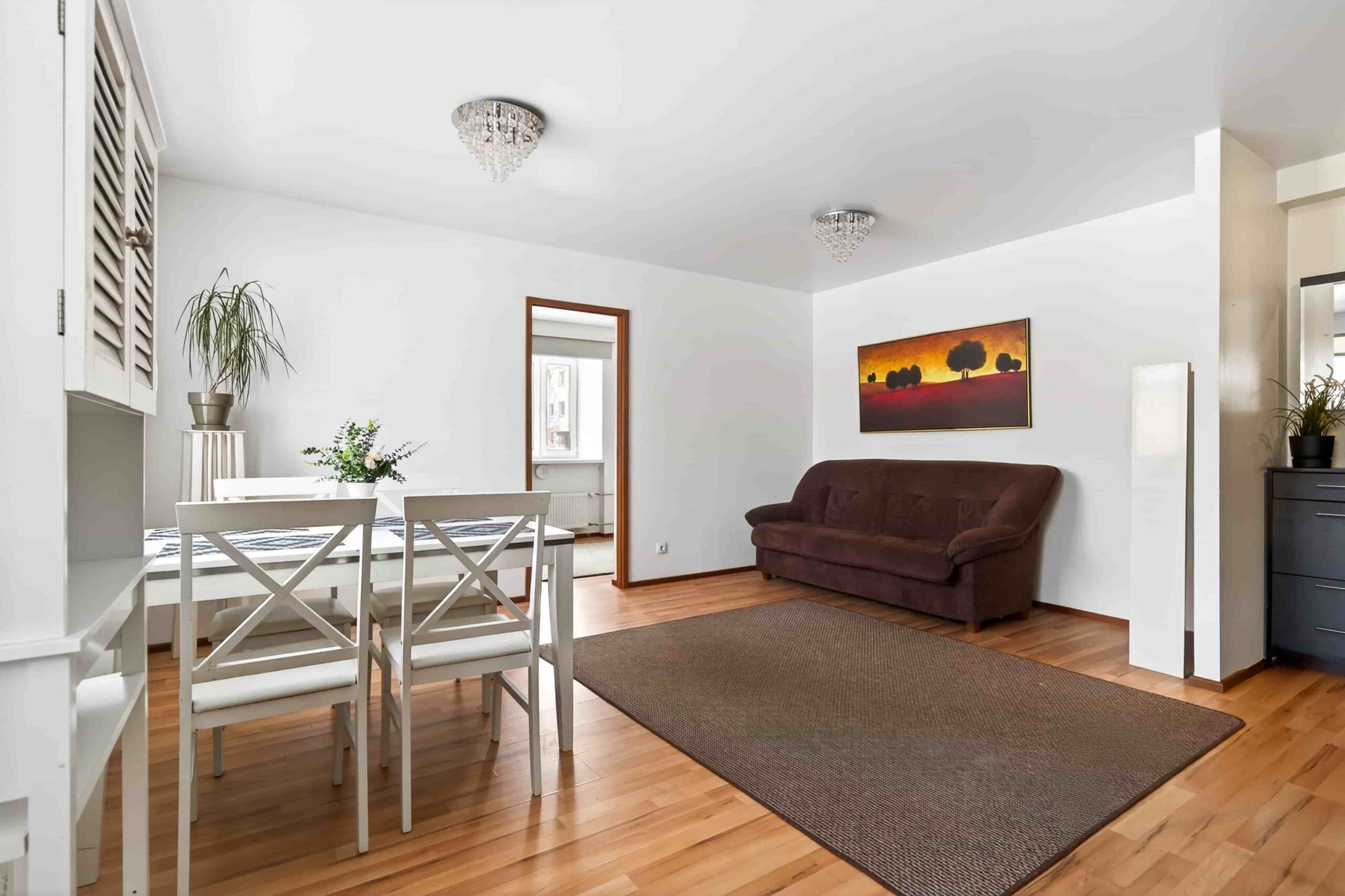 Planeering on praktiline: esik, avatud köögiga elutuba, eraldi magamistuba ning vannituba/WC. Köök on varustatud mööbli ja tehnikaga.