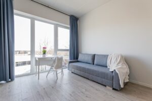 Korter on varustatud kõige eluks vajalikuga: lahtikäiv diivan, kvaliteetne köögimööbel koos tehnikaga(külmkapp, kubu, pliit ja ahi).