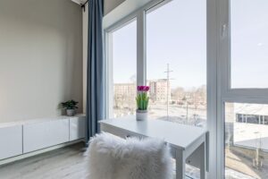 Korter on mõnusalt valgusküllane ja avarust annavad kõrged laed ning maast laeni aknad. Tänu korteri suurepärasele asukohale 5. korrusel on aknast imeline vaade Kopli tänavale ja pargile.