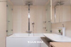 Vannitoas on vann ja vanematel hea lõõgastuda, LED-valgustusega lai peegelkapp ning eritellimusel valmistatud mahukas valamukapp. Esikus ja ühes magamistoas on sisseehitatud garderoobikapid, mis pakuvad piisavalt ruumi asjade hoiustamiseks.